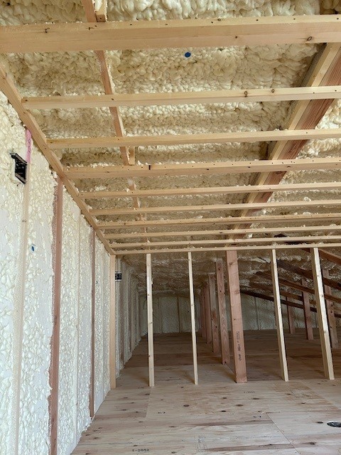 当社では、屋根に200㎜壁に85㎜の断熱材を吹き付けています。